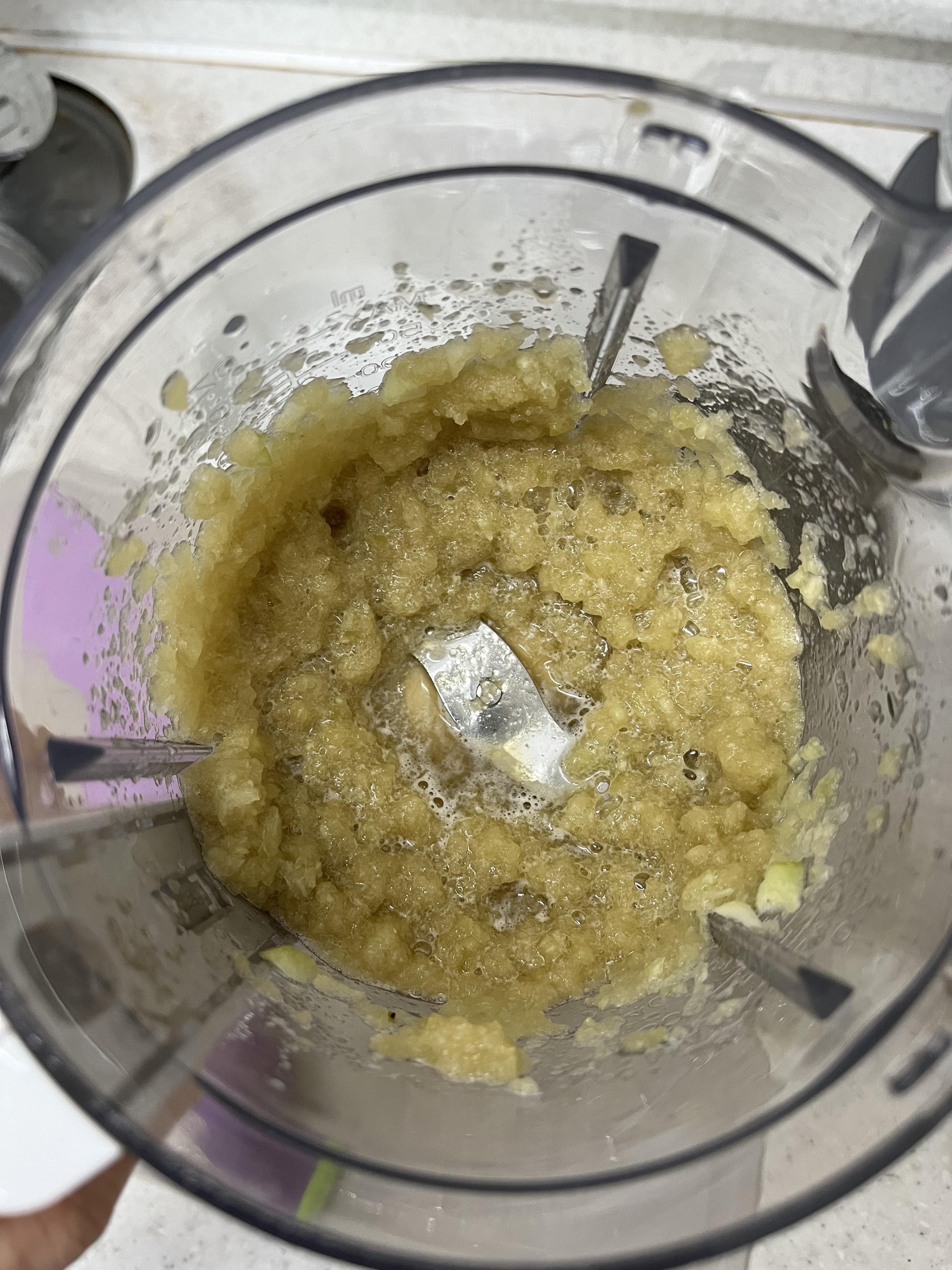 - 첫 번째 사진 보시면 칼로 다진 것과 믹서기로 간 가지의 입자가 다른 게 보이시죠?^^