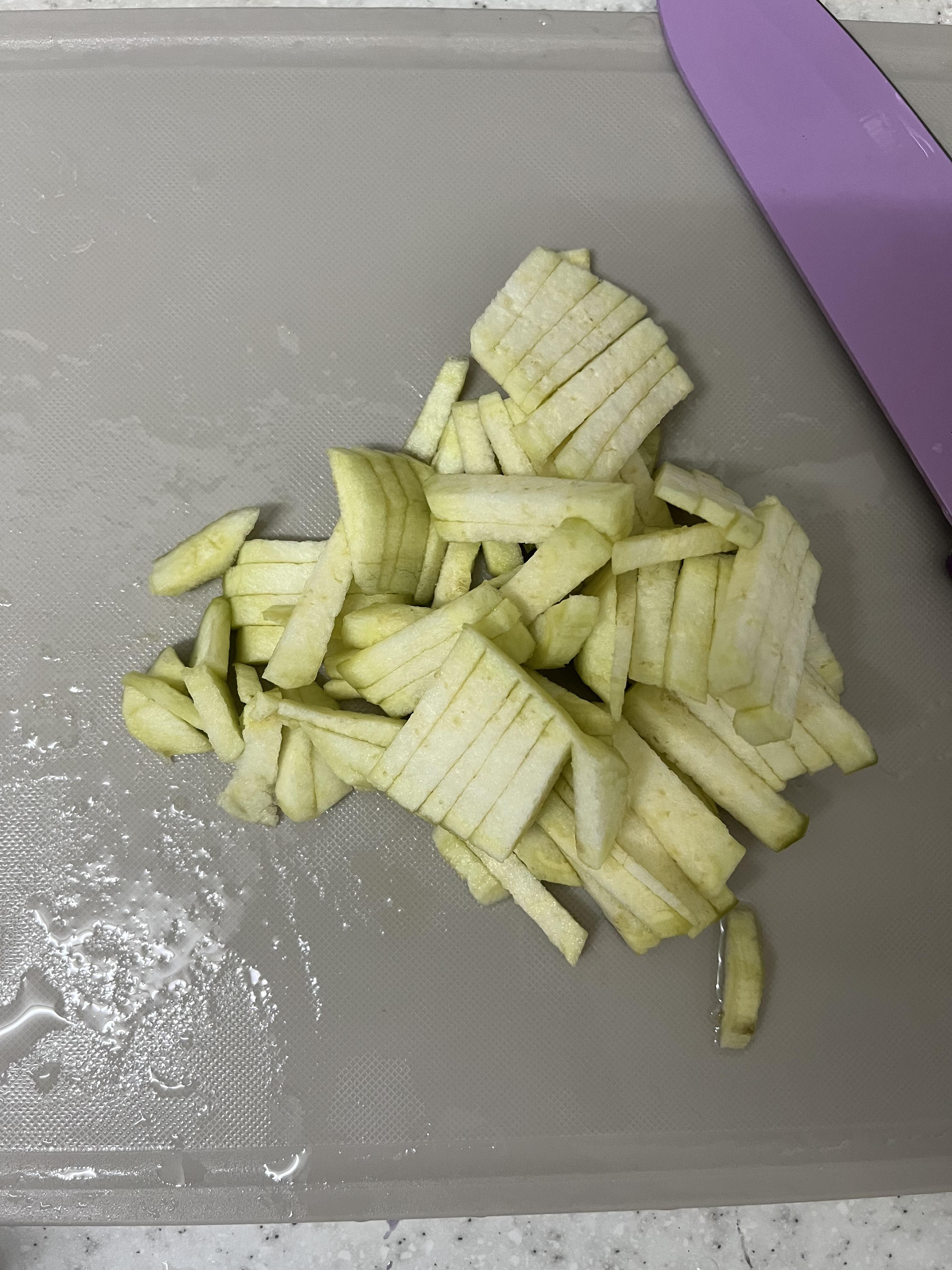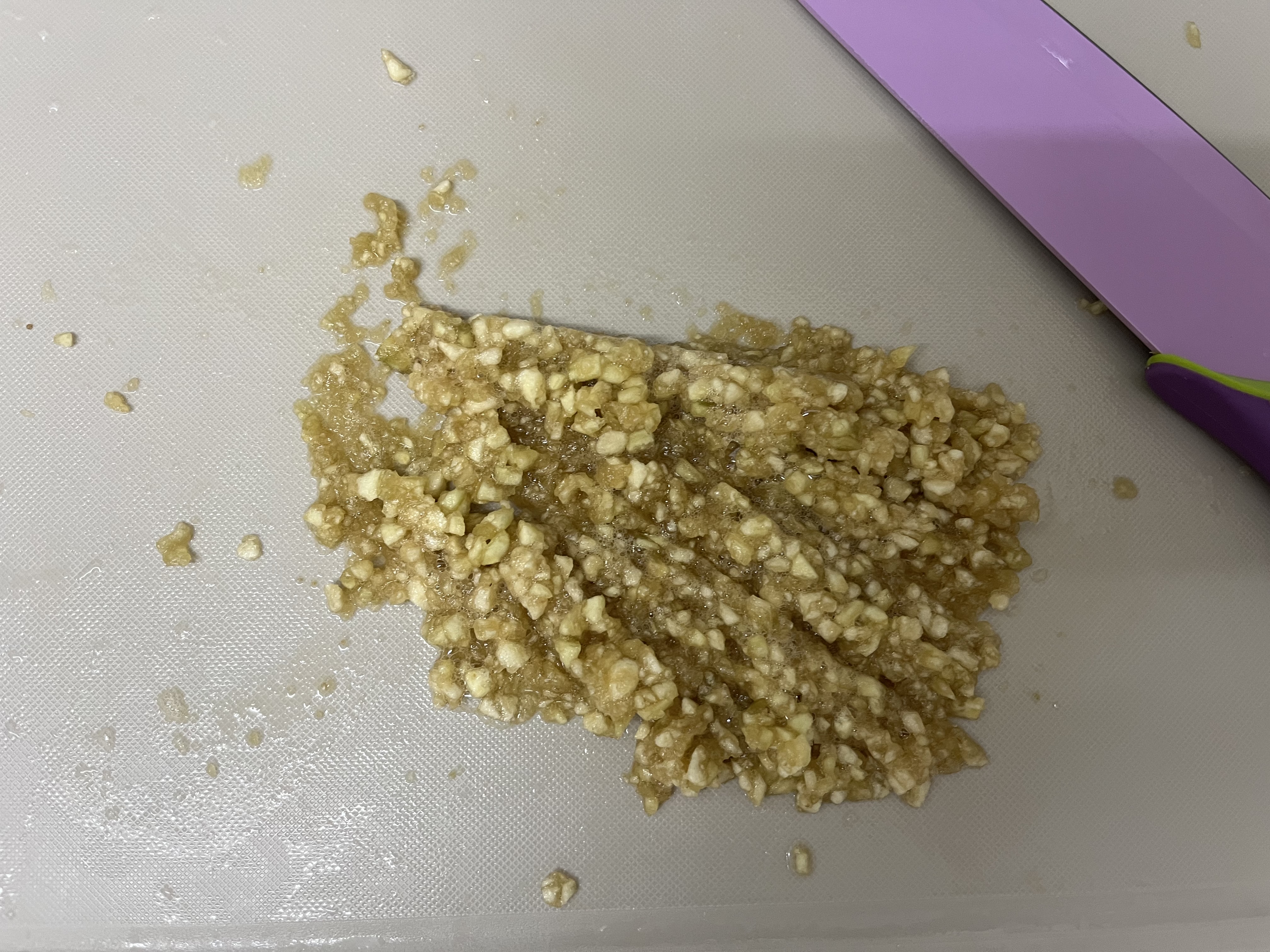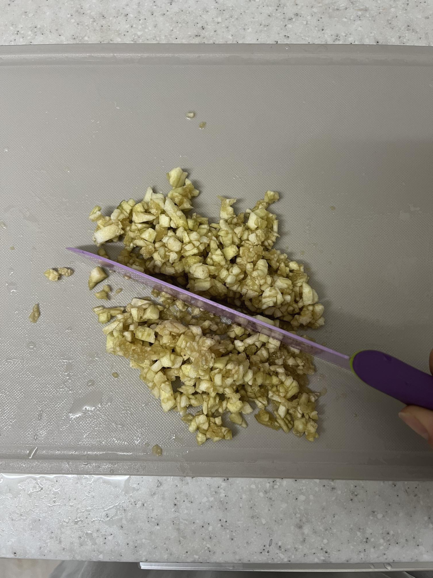 2-1) 껍질을 벗긴 가지를 작게 자른 후 칼로 다진다.