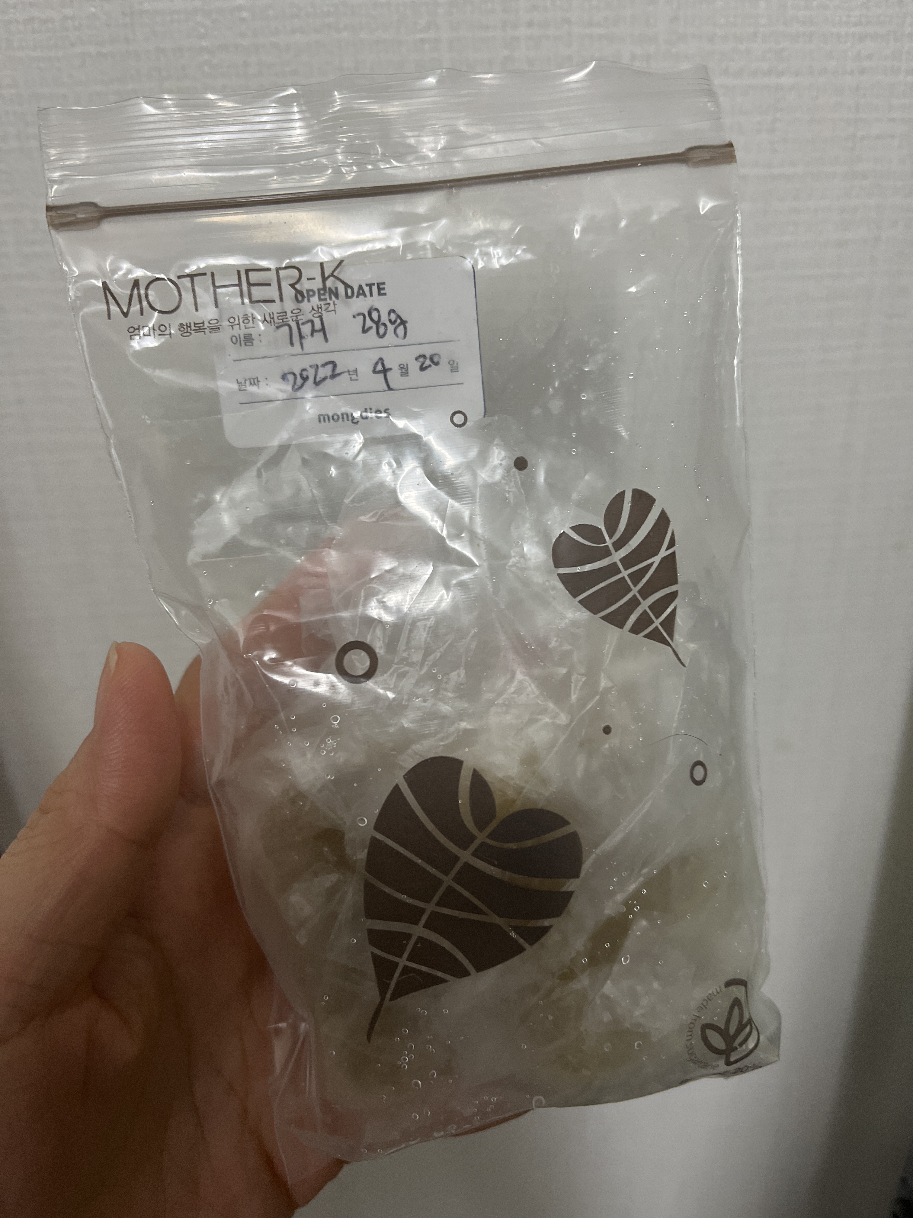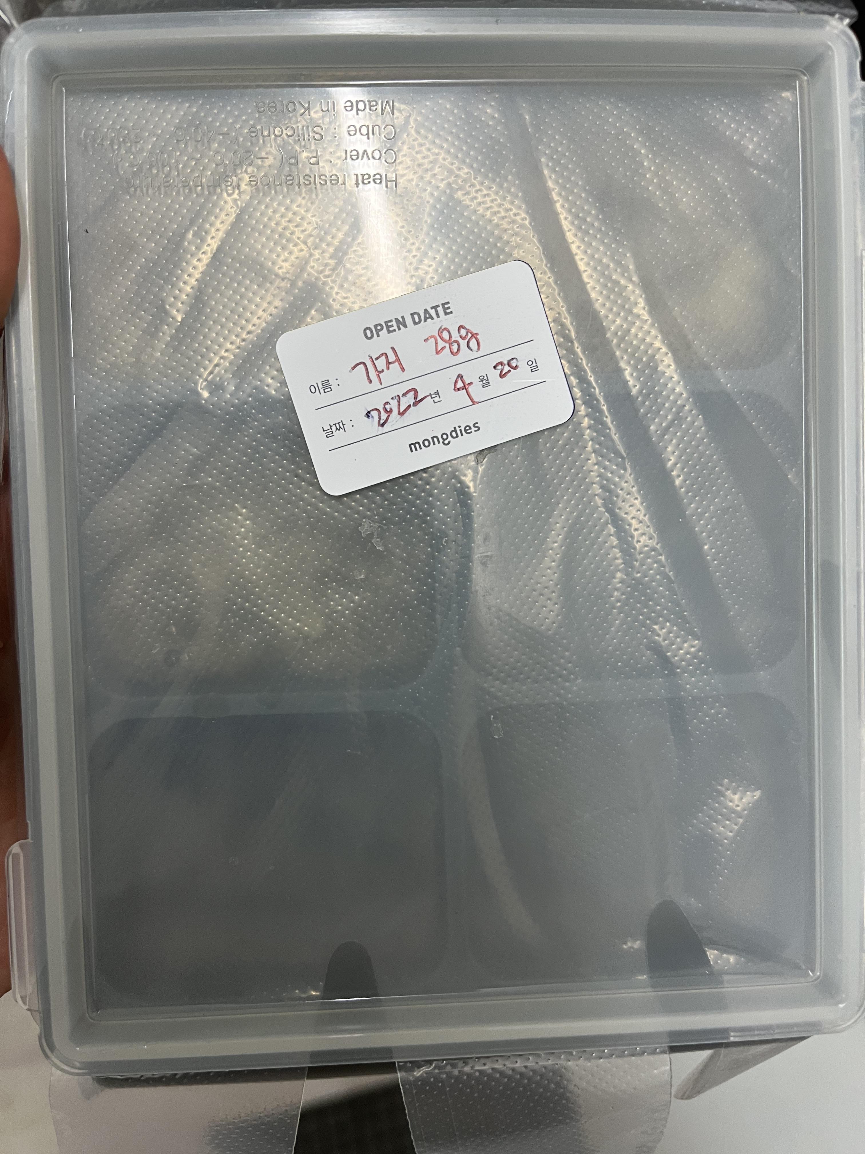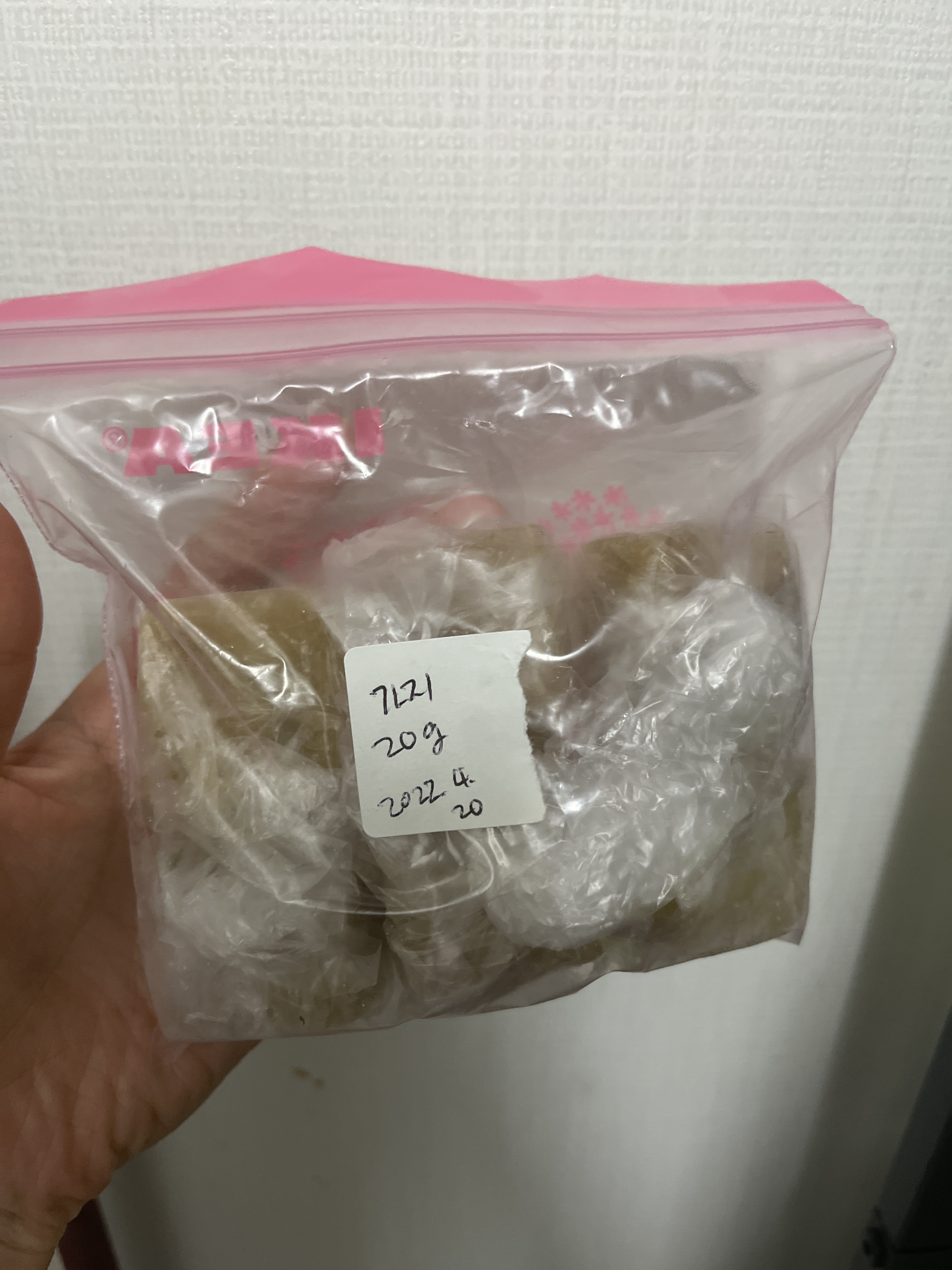 6) 다음 날 냉동된 큐브를 하나씩 꺼내어 랩에 싼 후 큐브를 만든 날짜를 적어 지퍼백에 보관한다.