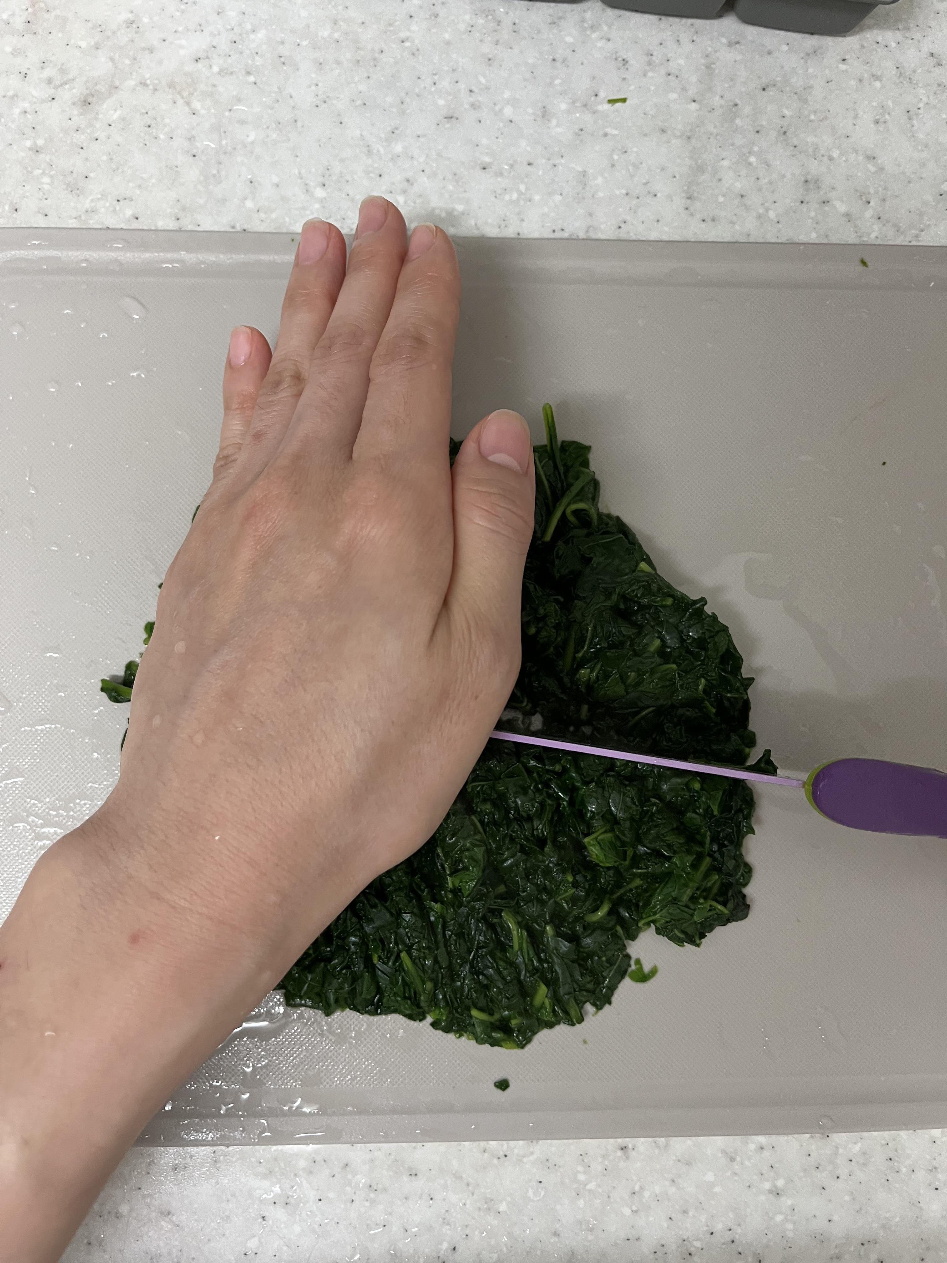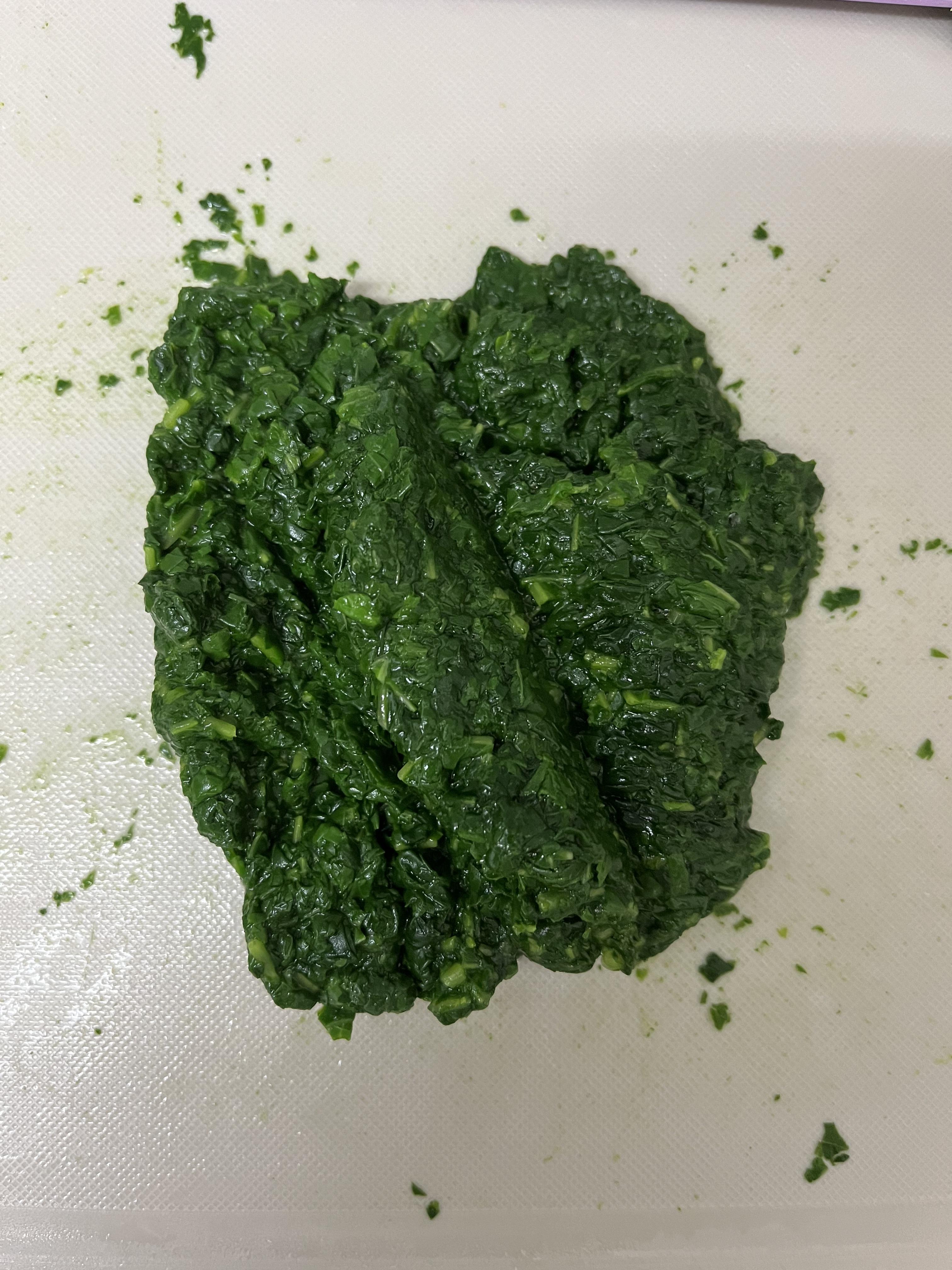 3) 데친 아욱의 물기를 쫙 빼고 칼로 다진다.