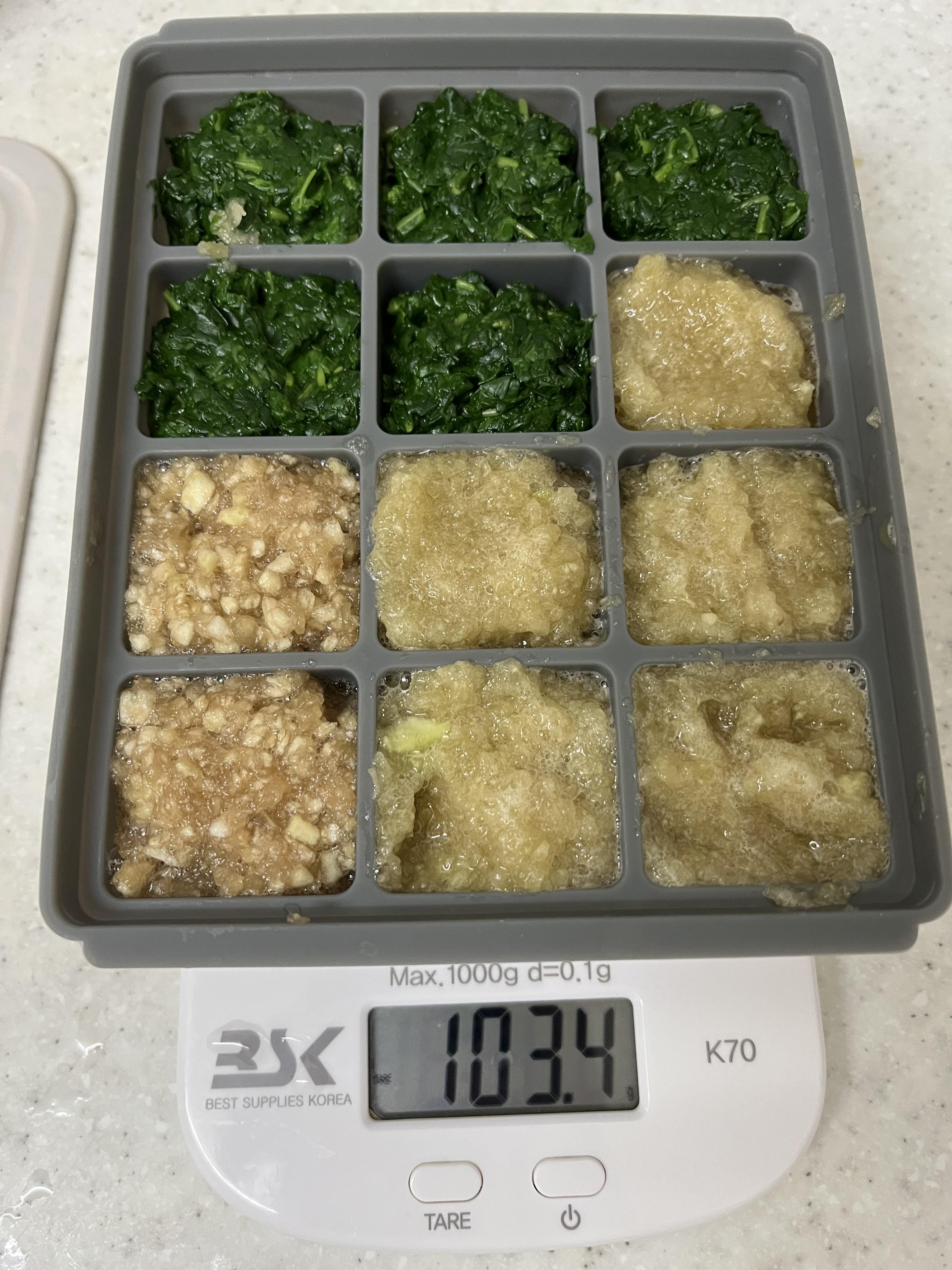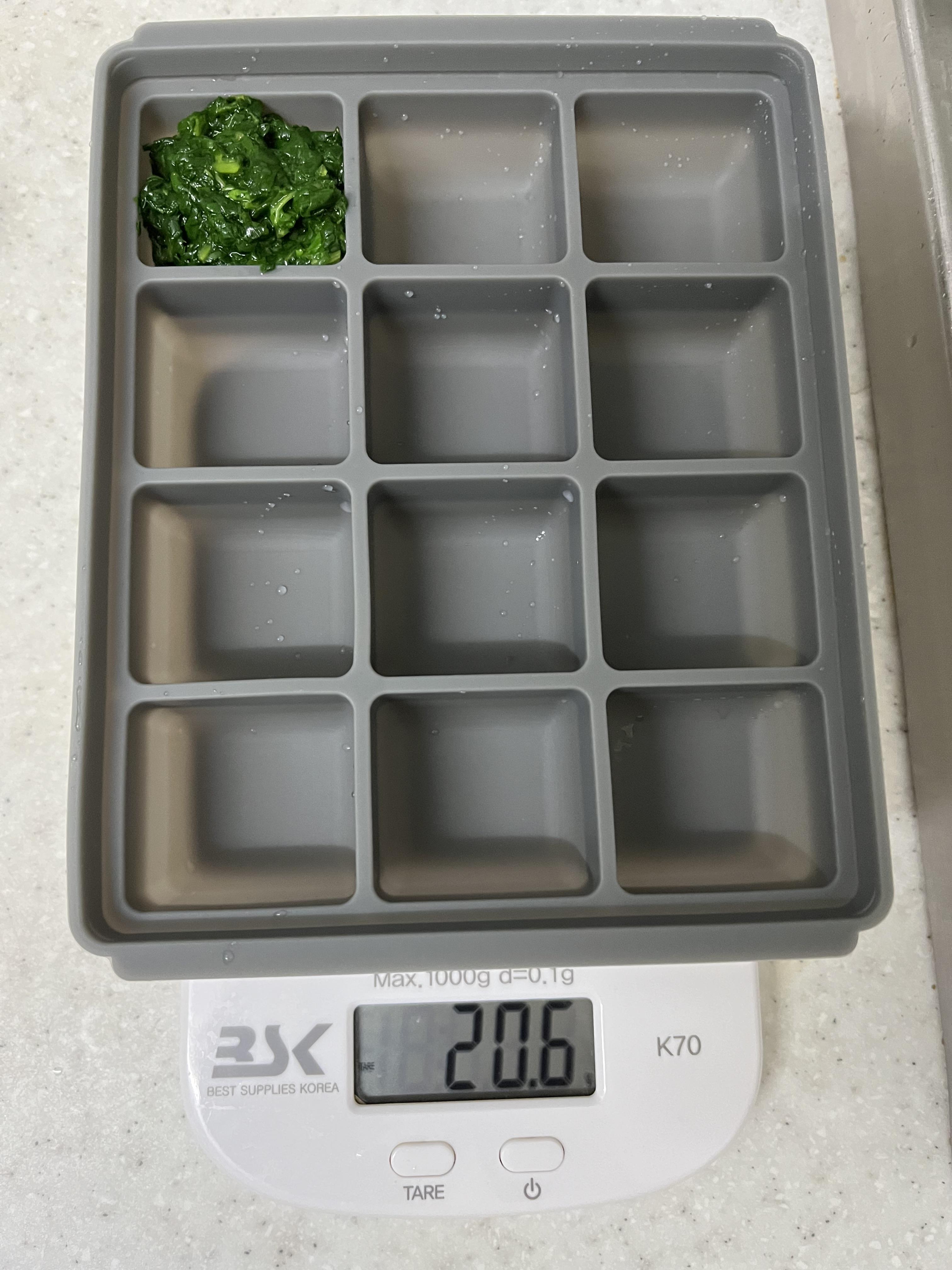 아주 쉽죠? 이렇게 이유식용 아욱 큐브를 만들어 보았습니다.^^
