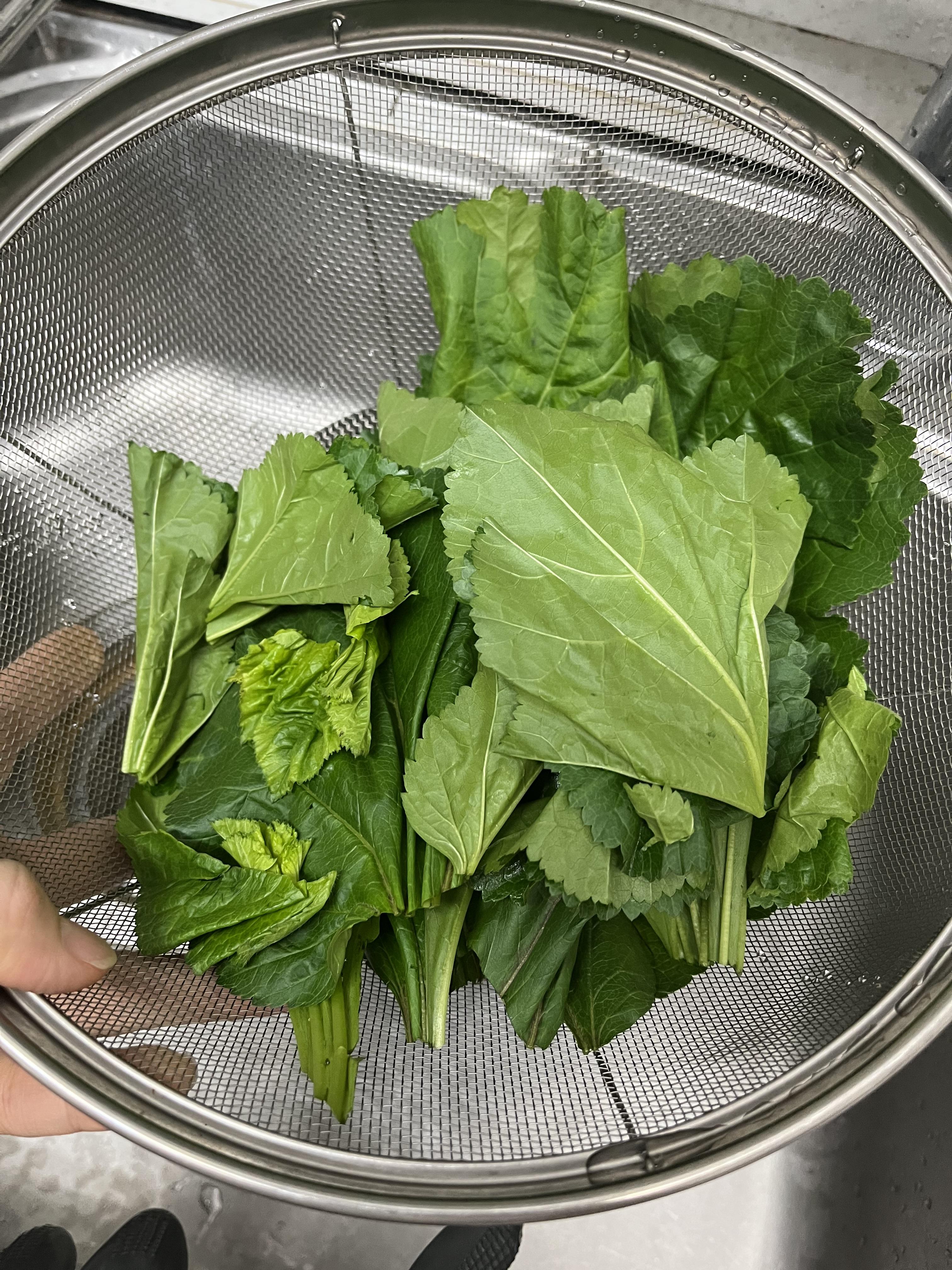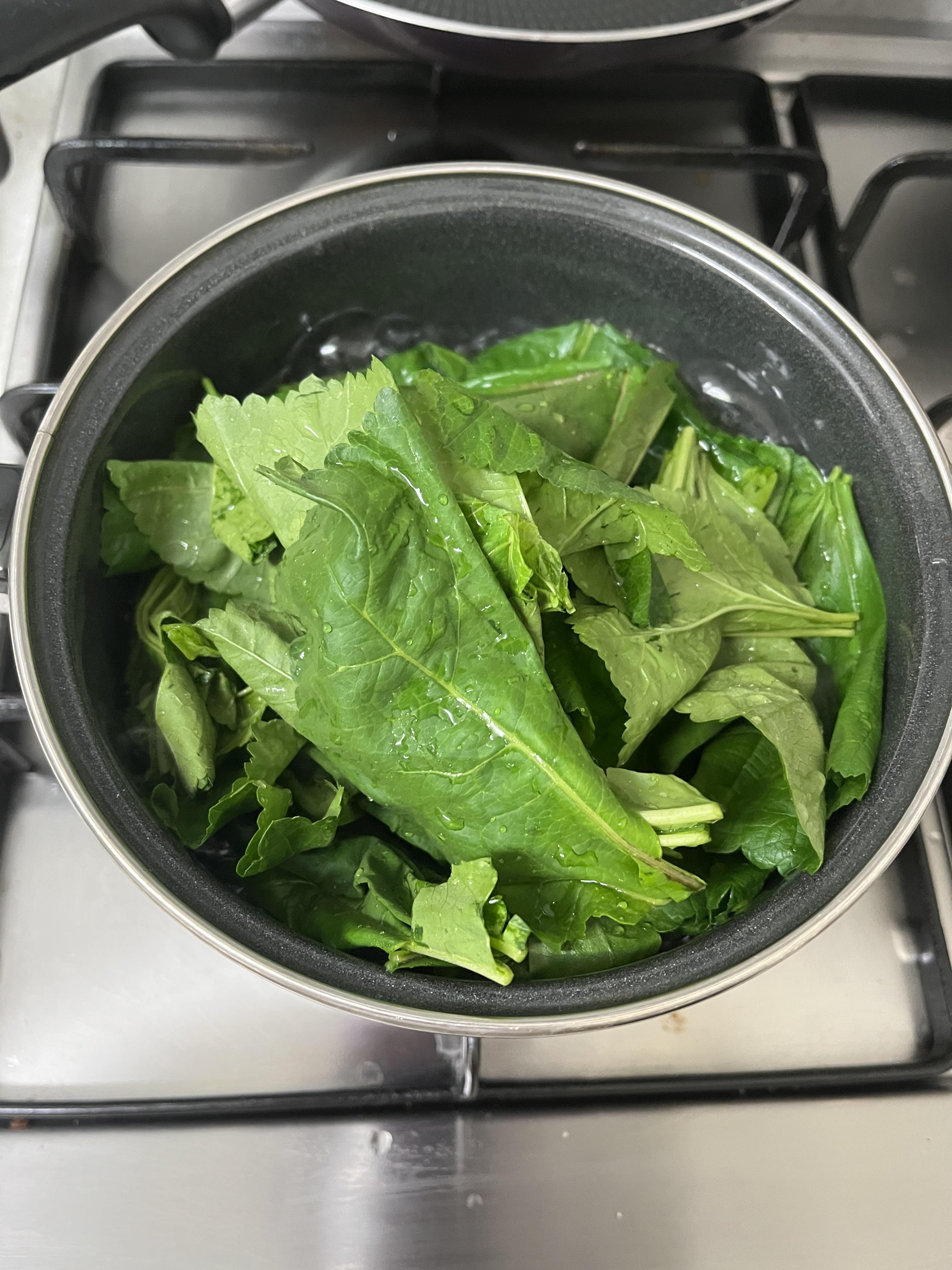 2) 끓는 물에 깨끗이 씻은 아욱을 3분 정도 데친다.