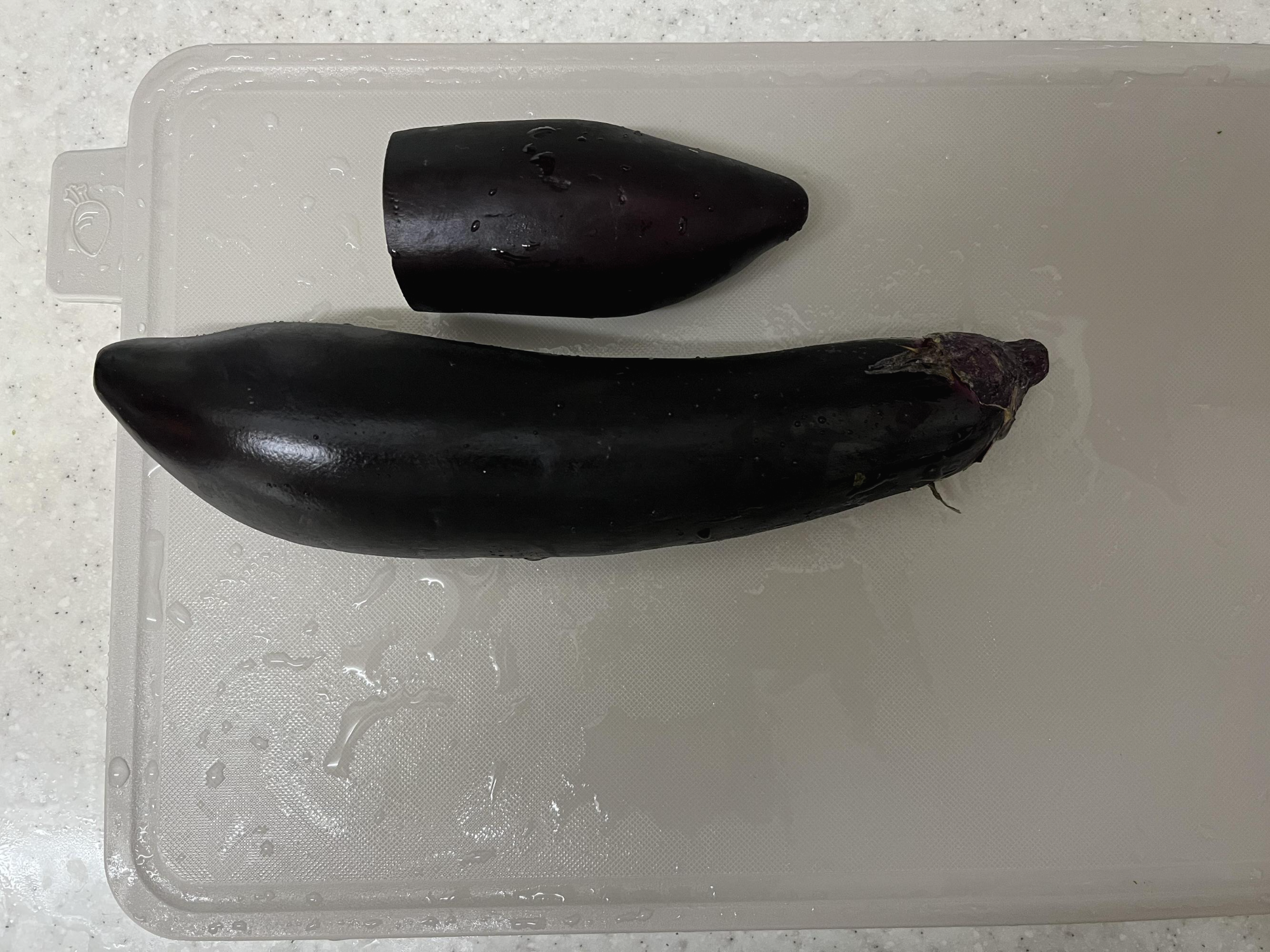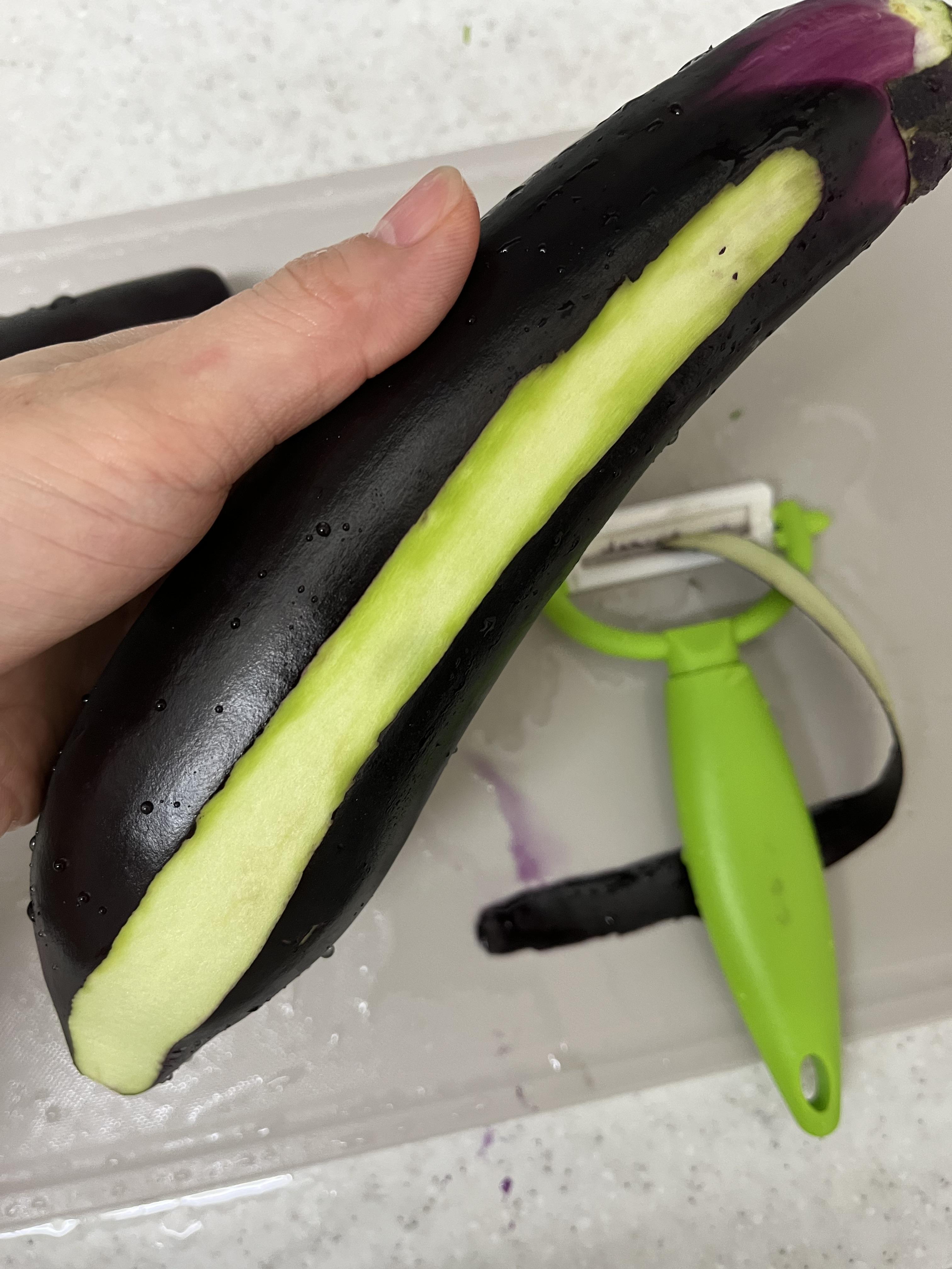 1) 깨끗하게 씻은 가지의 껍질을 벗긴다.