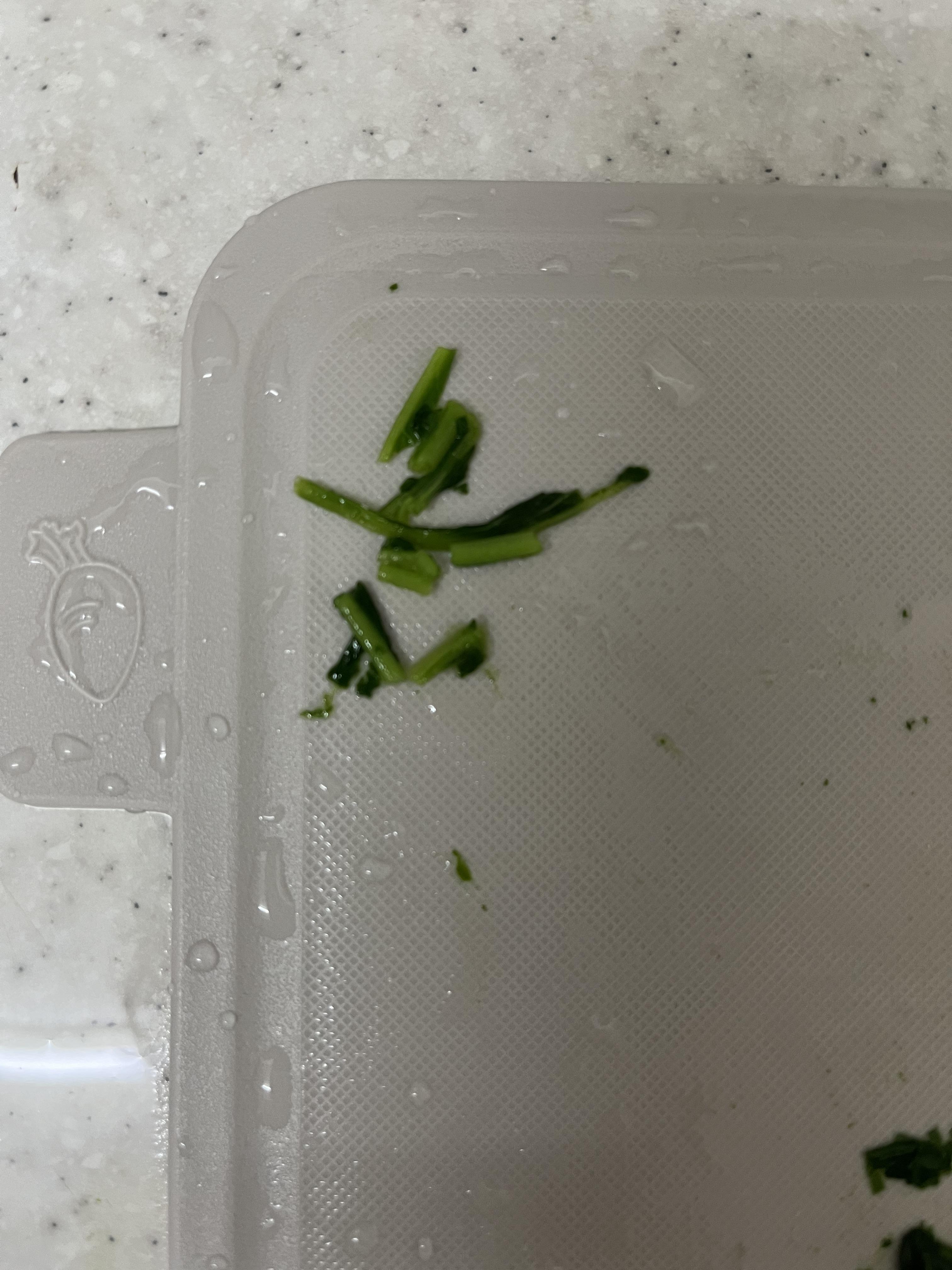 4) 칼로 다질 때 억센 줄기부분도 잘게 다져주고 그렇지 않은 줄기들은 제거해 준다.