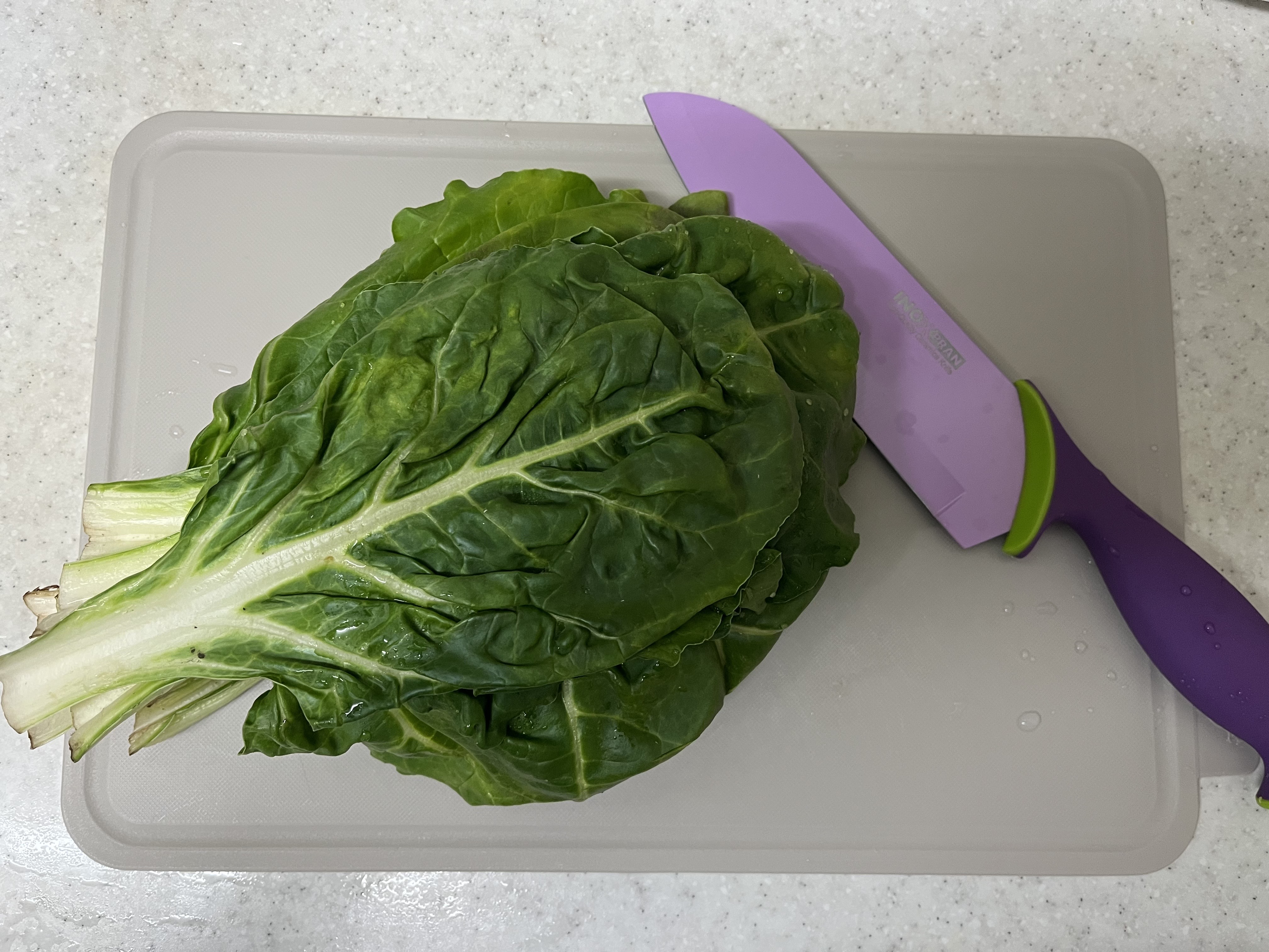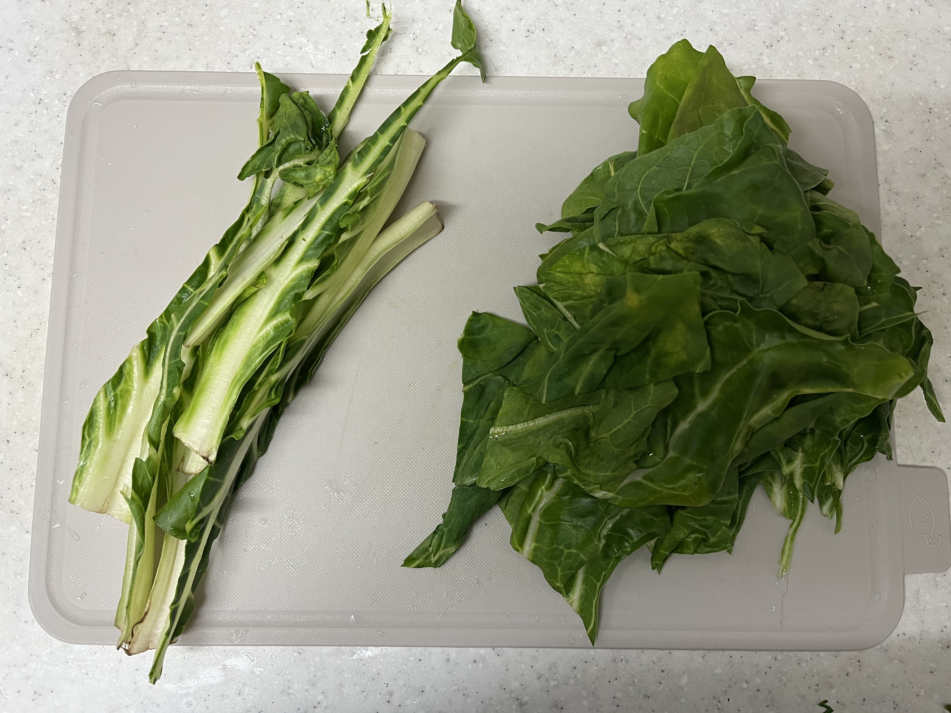 1) 근대의 줄기 부분을 자르고 깨끗이 씻는다.