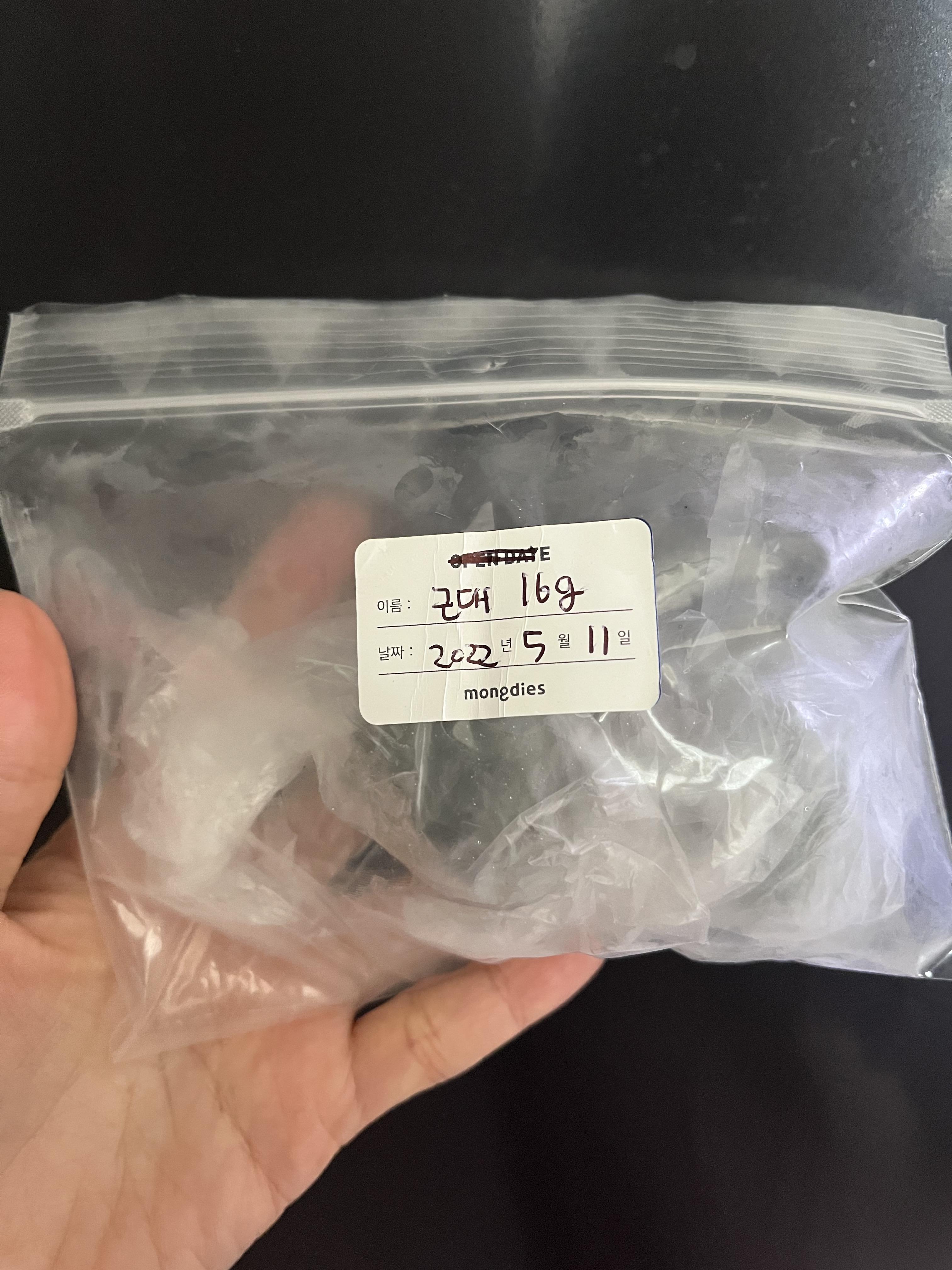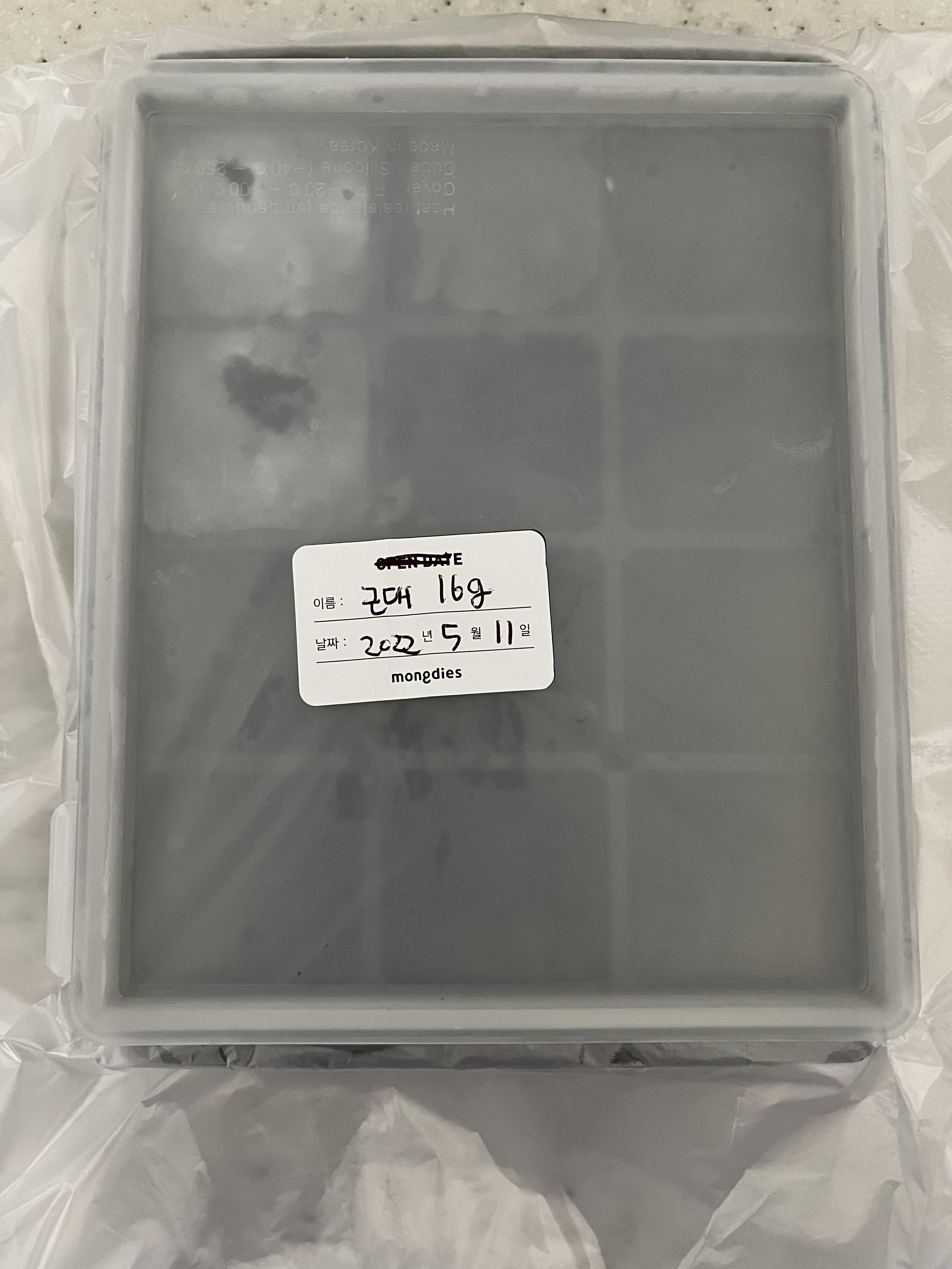 6) 다음 날 냉동된 큐브를 하나씩 꺼내어 랩에 싼 후 큐브를 만든 날짜를 적어 지퍼백에 보관한다.