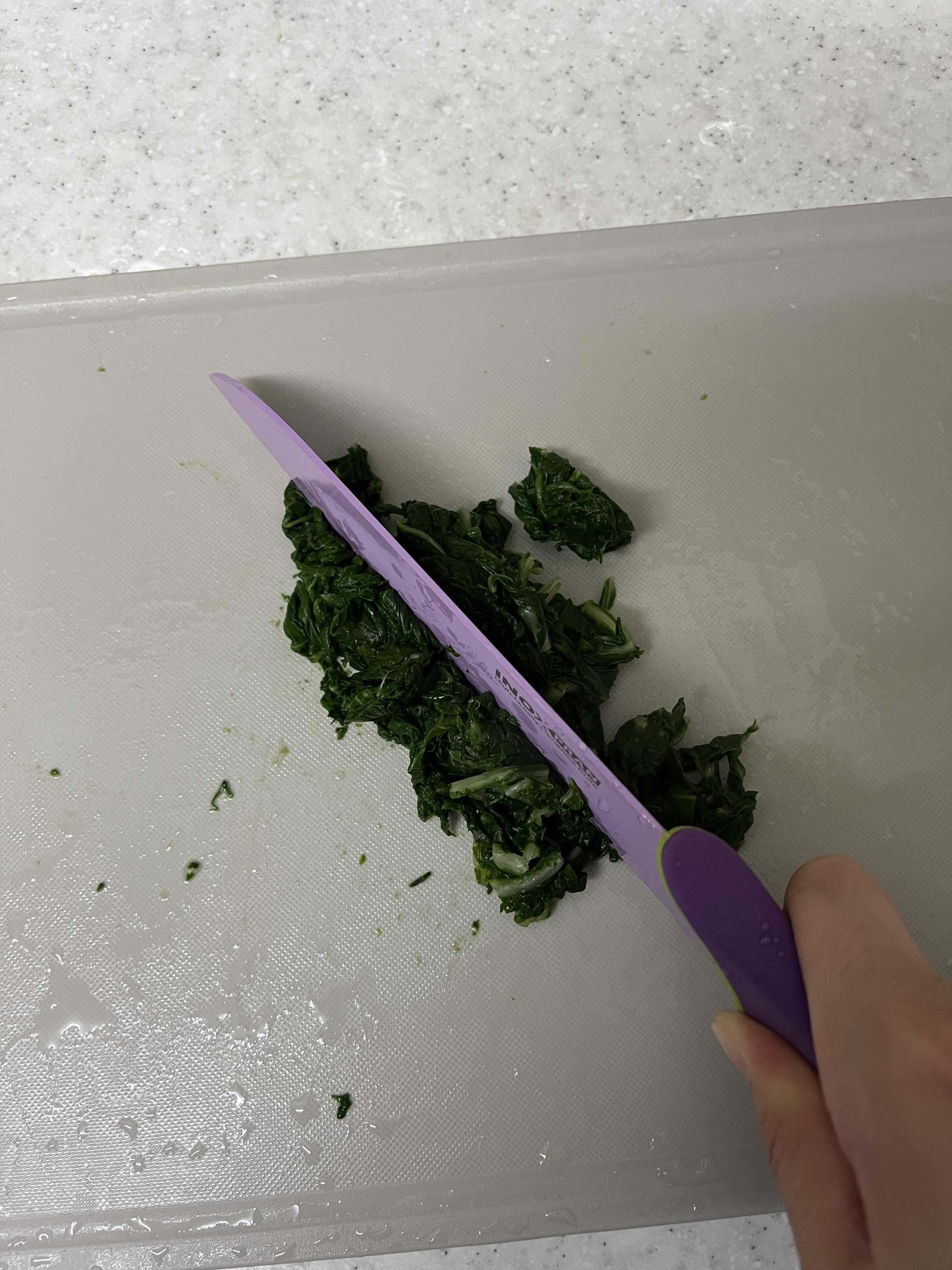 3) 데친 근대의 물기를 쫙 빼고 칼로 다진다.