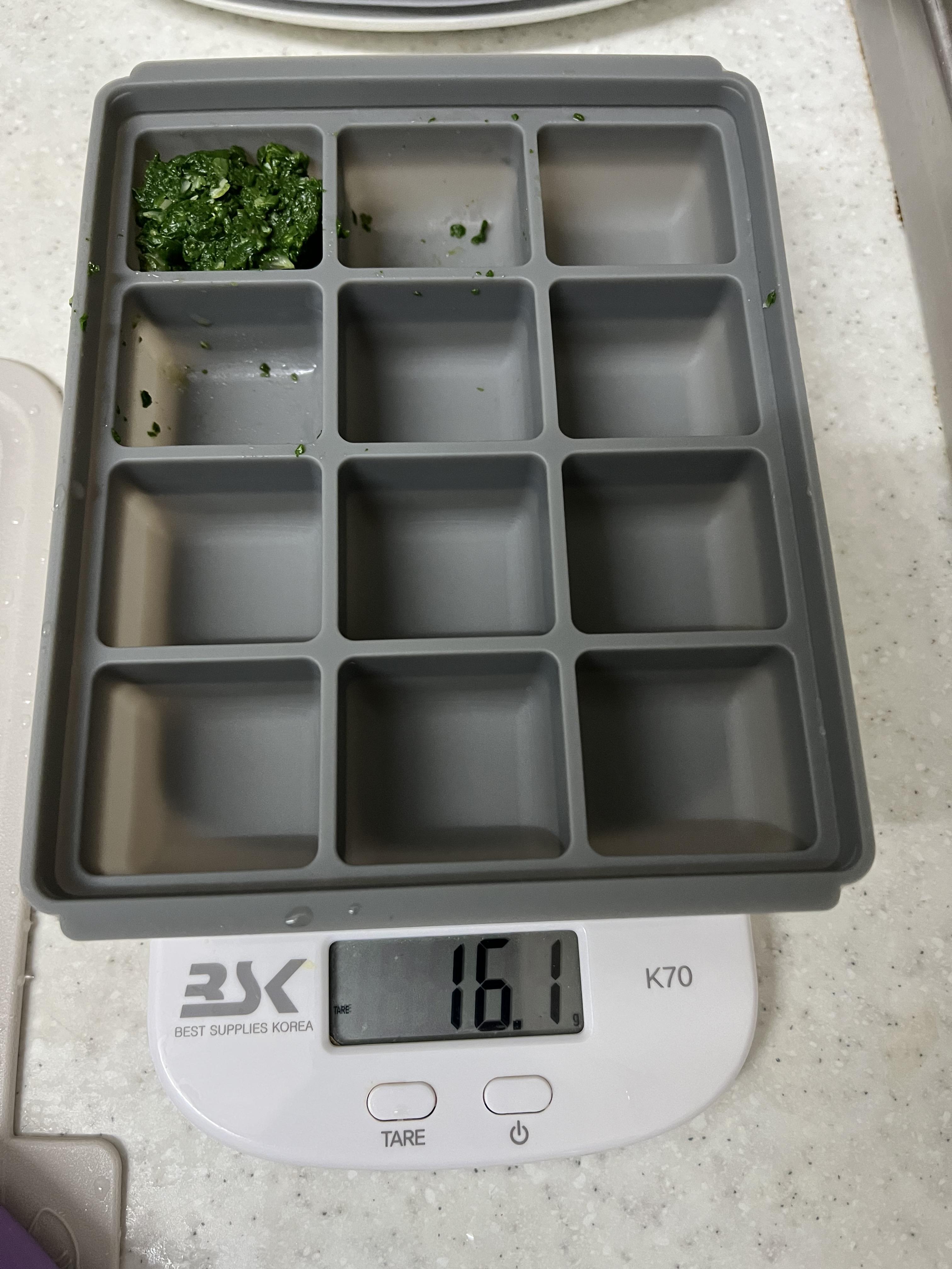또 이렇게 이유식용 큐브 한 개가 만들어졌습니다.