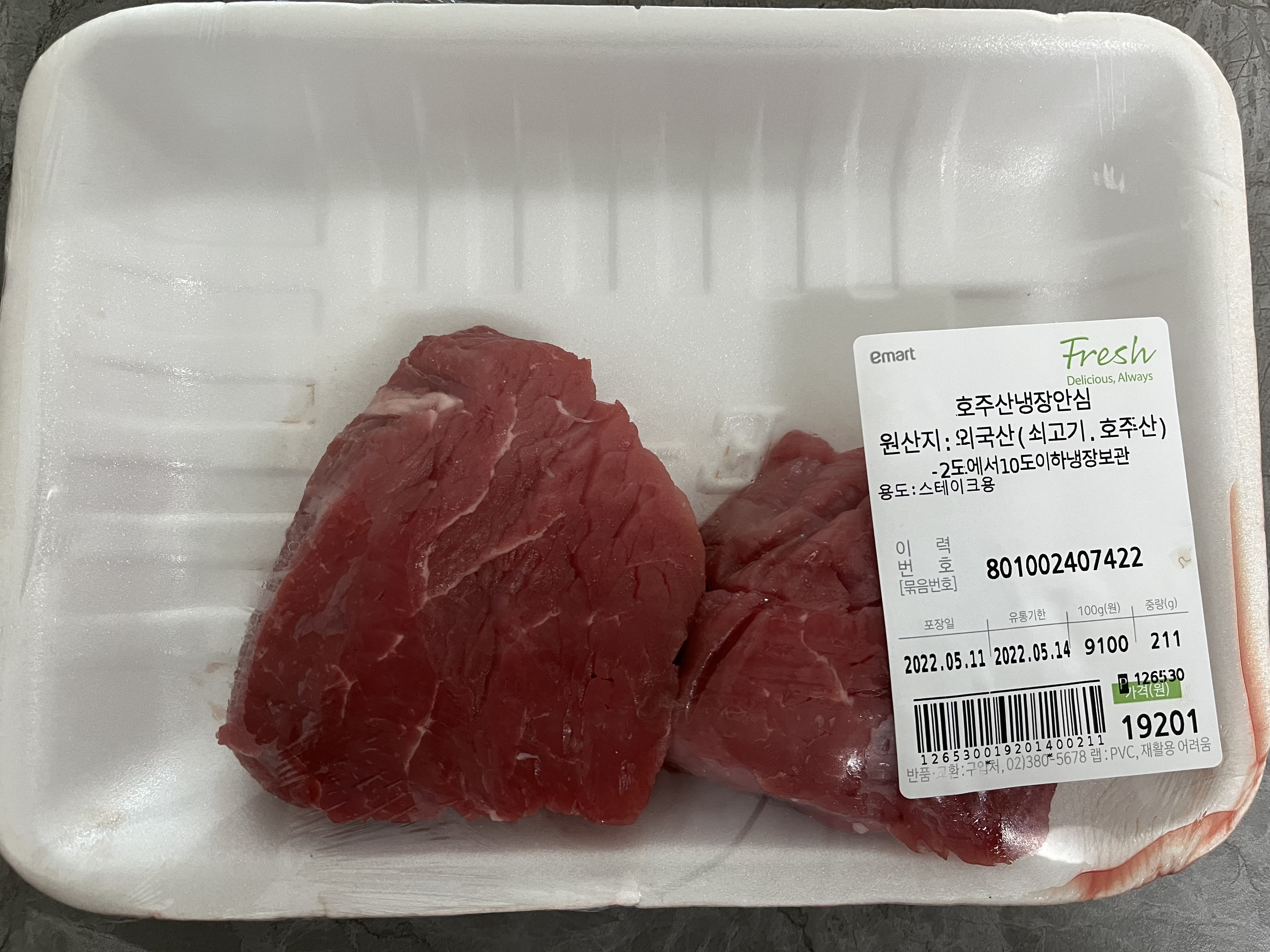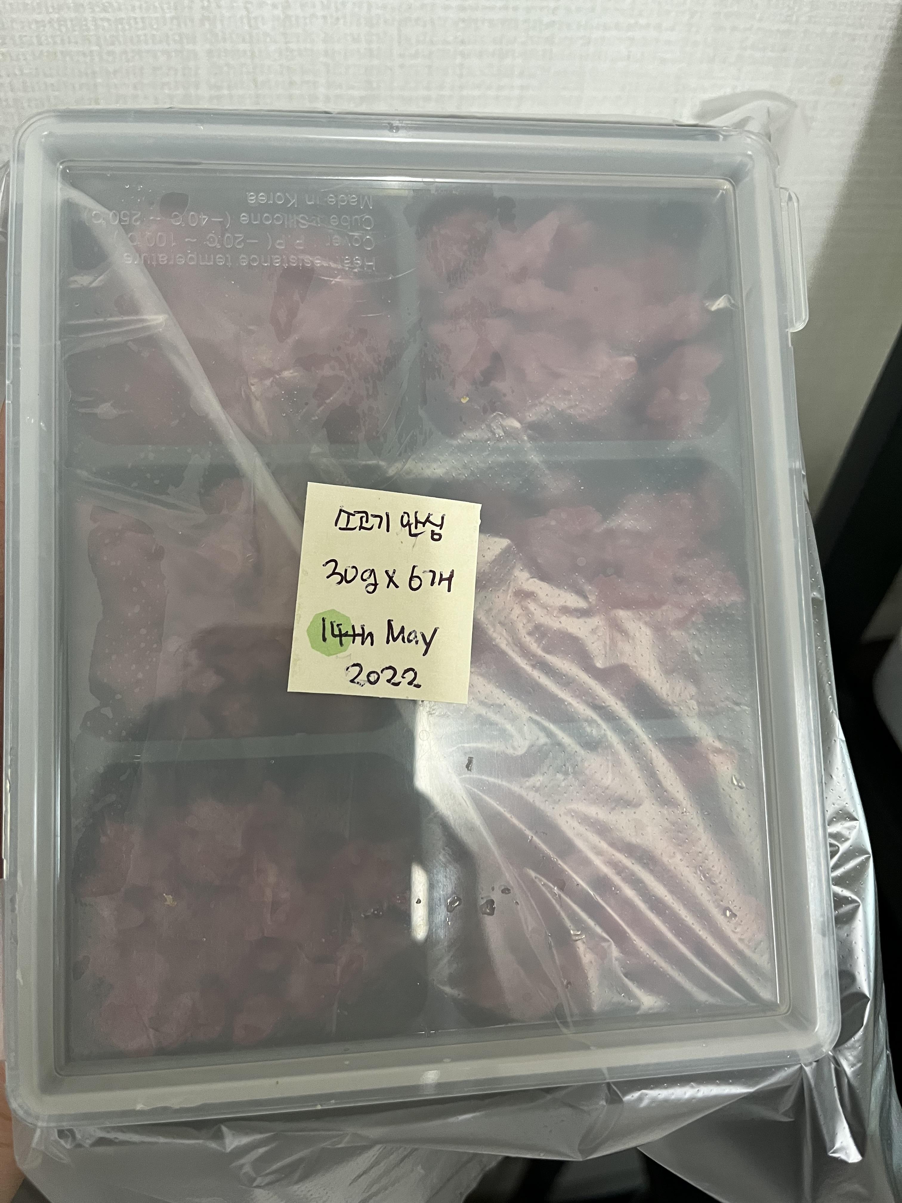 위에도 적었듯이 저의 경우 소고기 안심 부위 211g으로 30g짜리 5개의 큐브가 나왔어요.