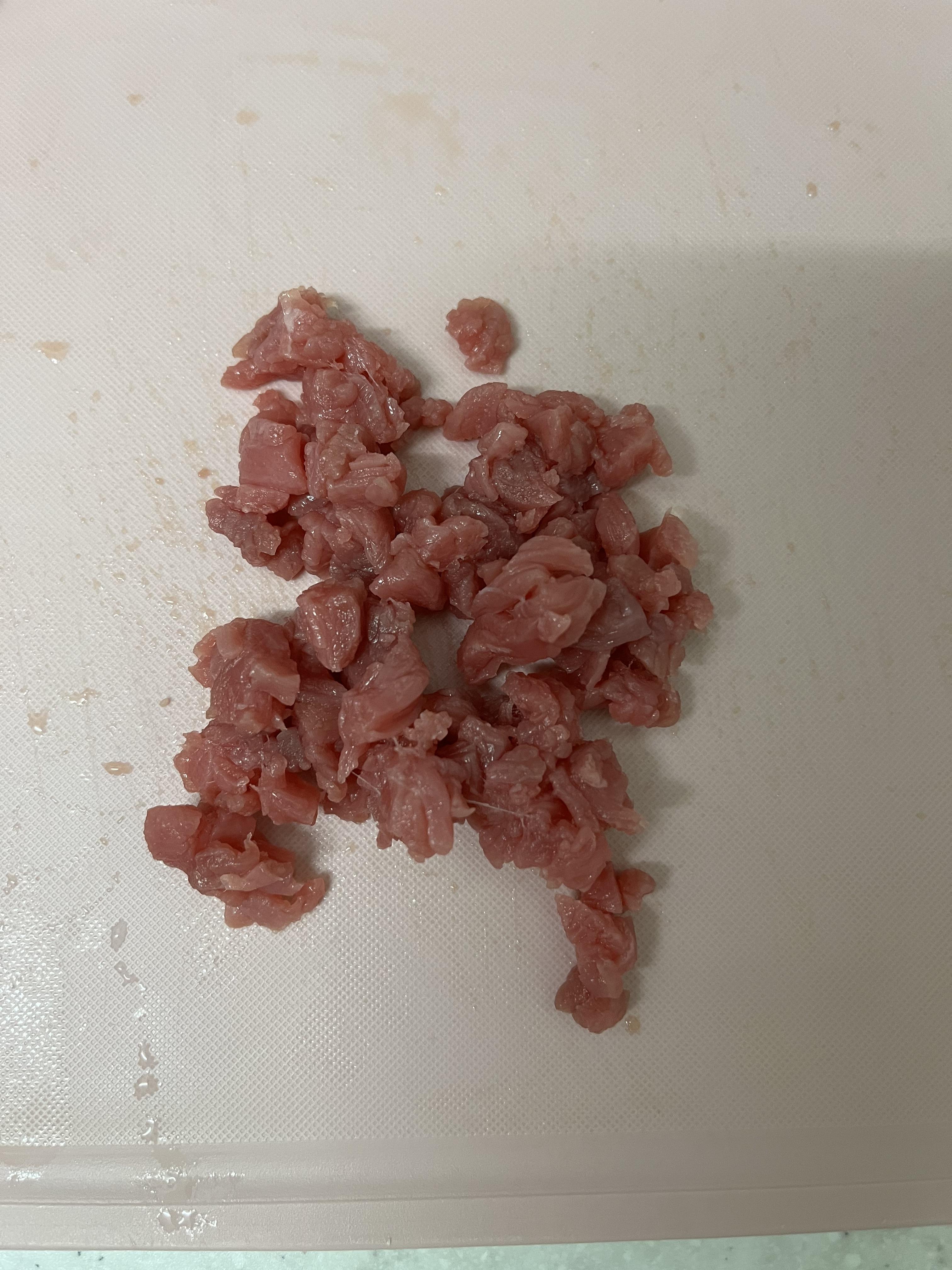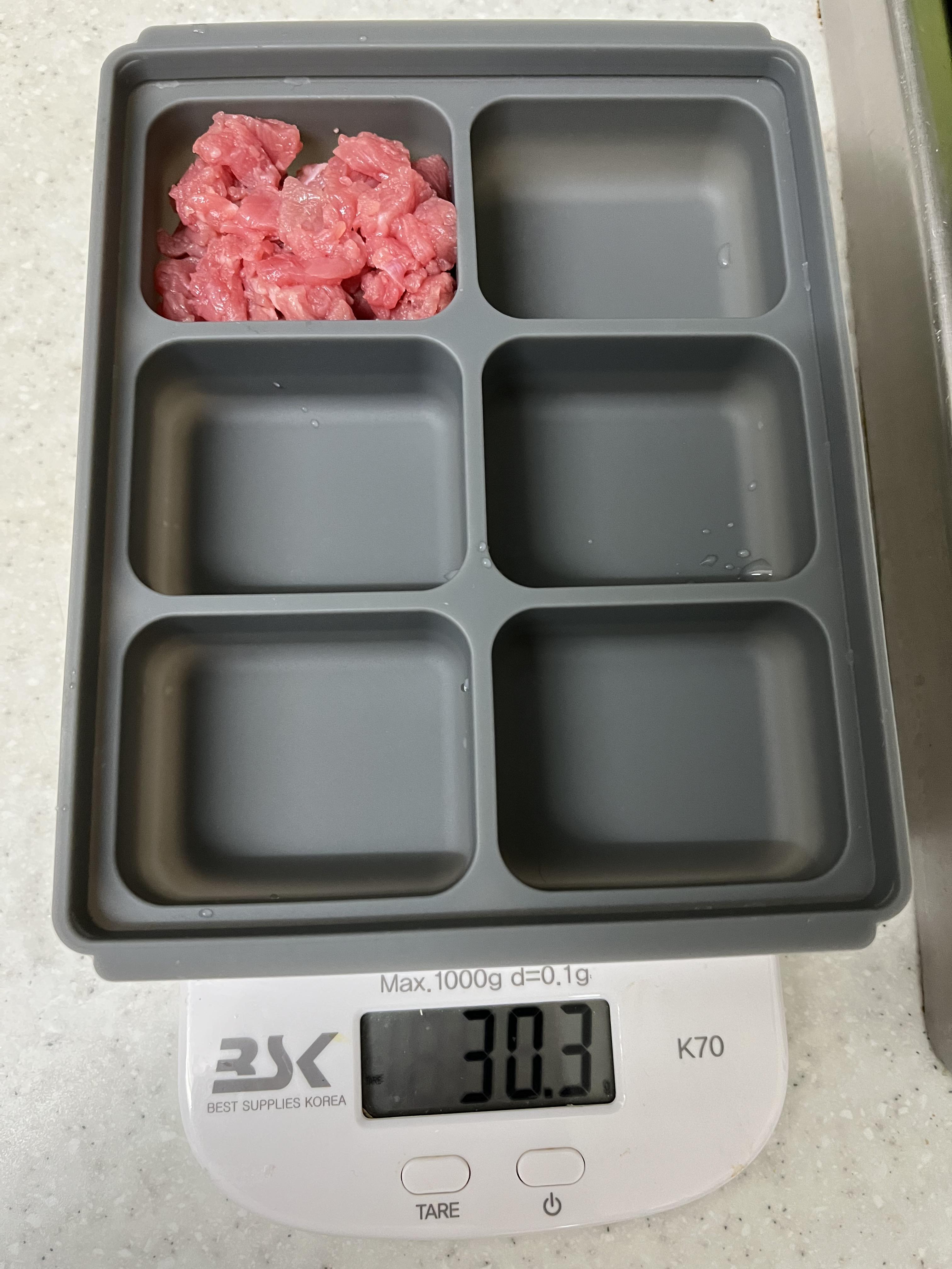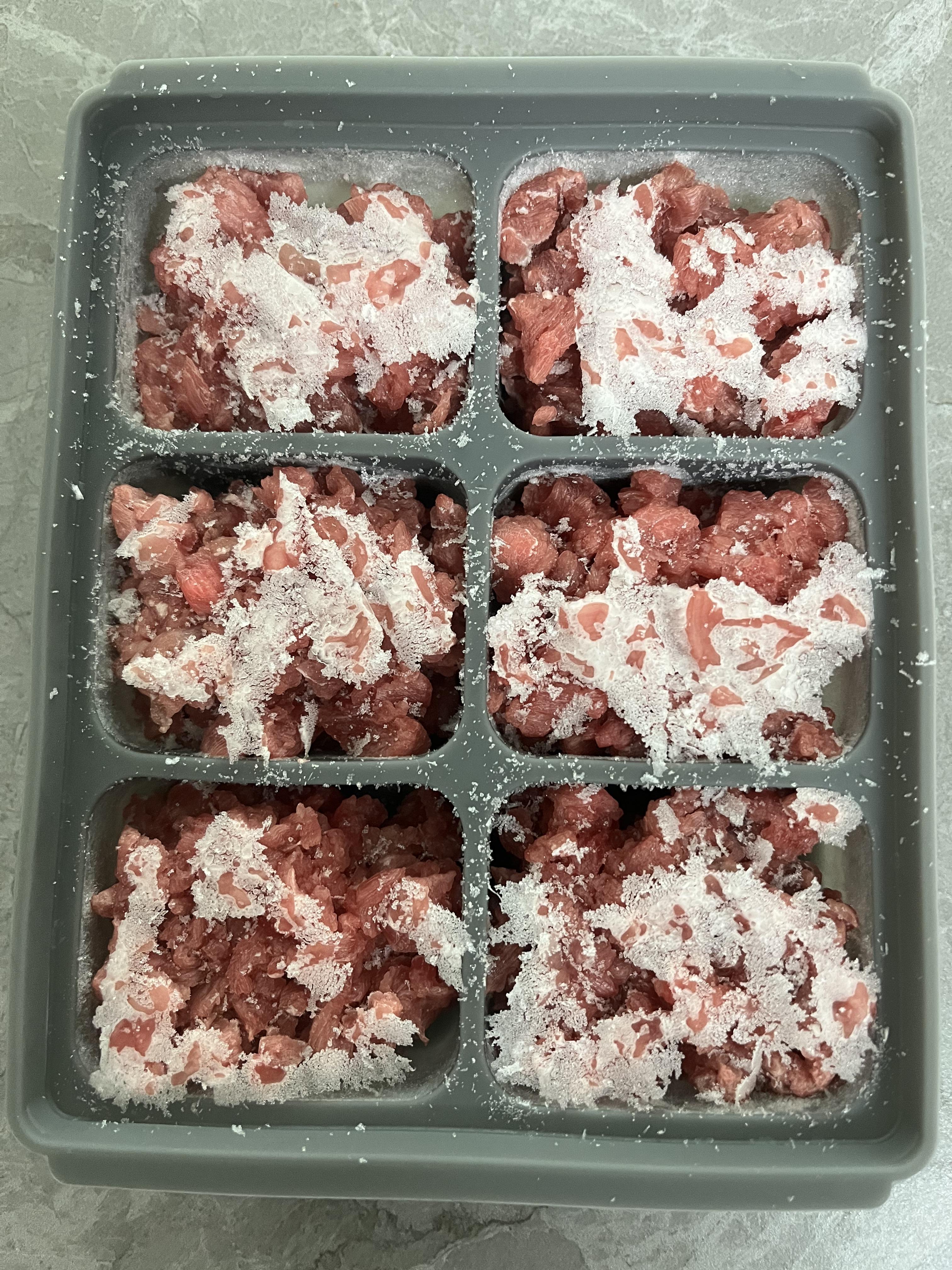 3) 이유식용 큐브에 잘게 자른 소고기를 담는다.