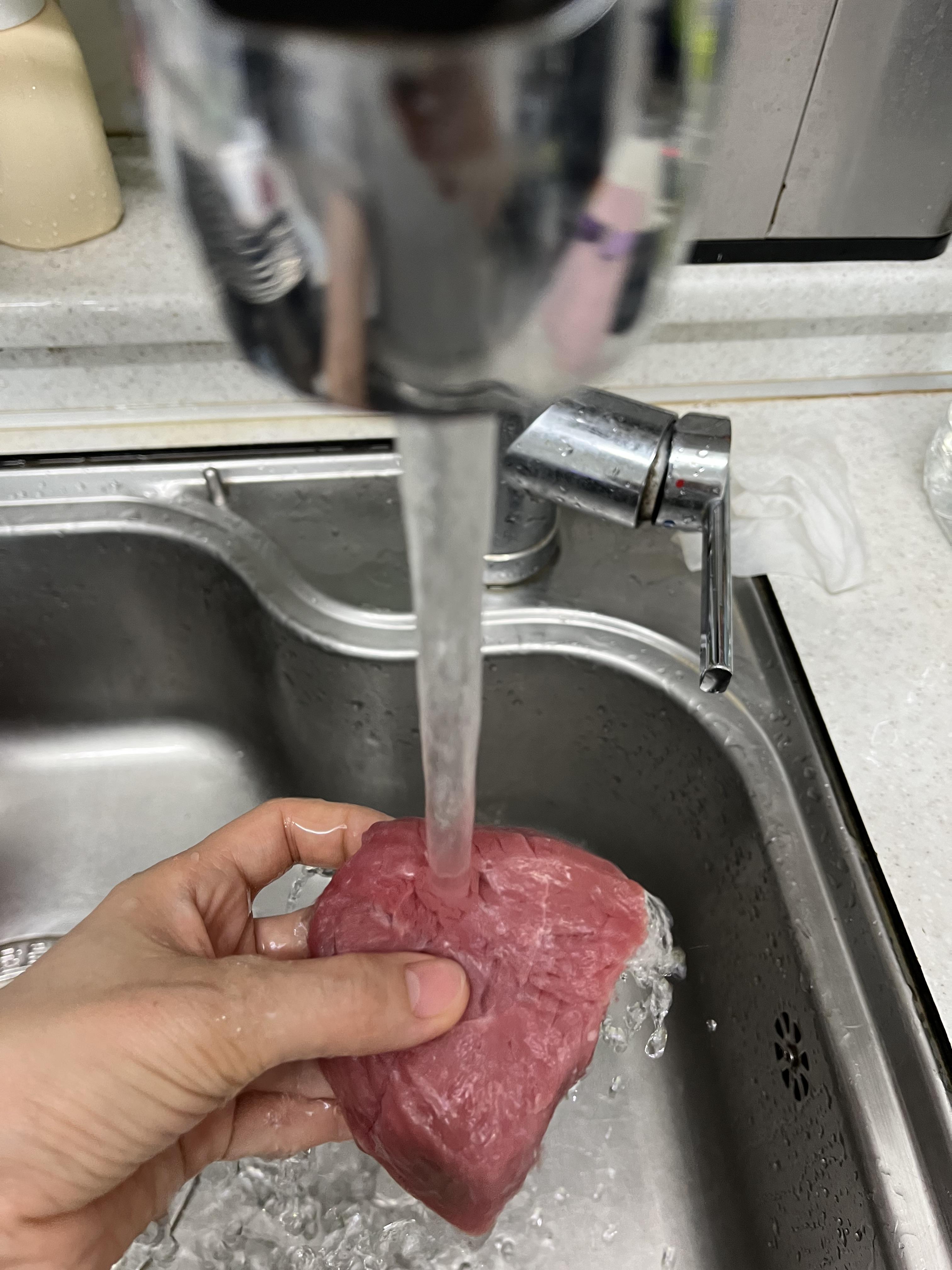 1) 소고기 안심 부위를 흐르는 물에 씻는다.