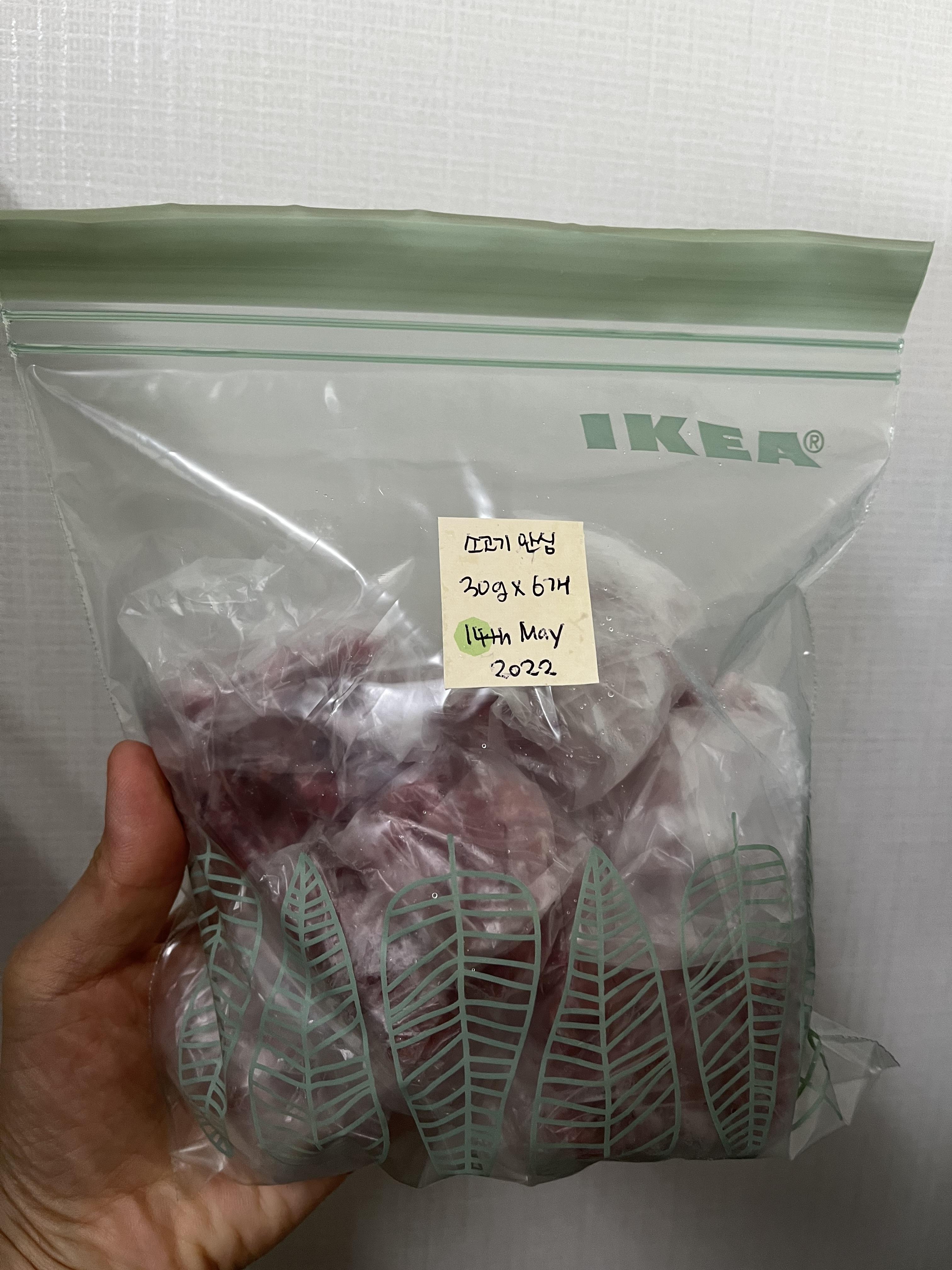 5) 다음 날 냉동된 큐브를 하나씩 꺼내어 랩에 싼 후 큐브를 만든 날짜를 적어 지퍼백에 보관한다.